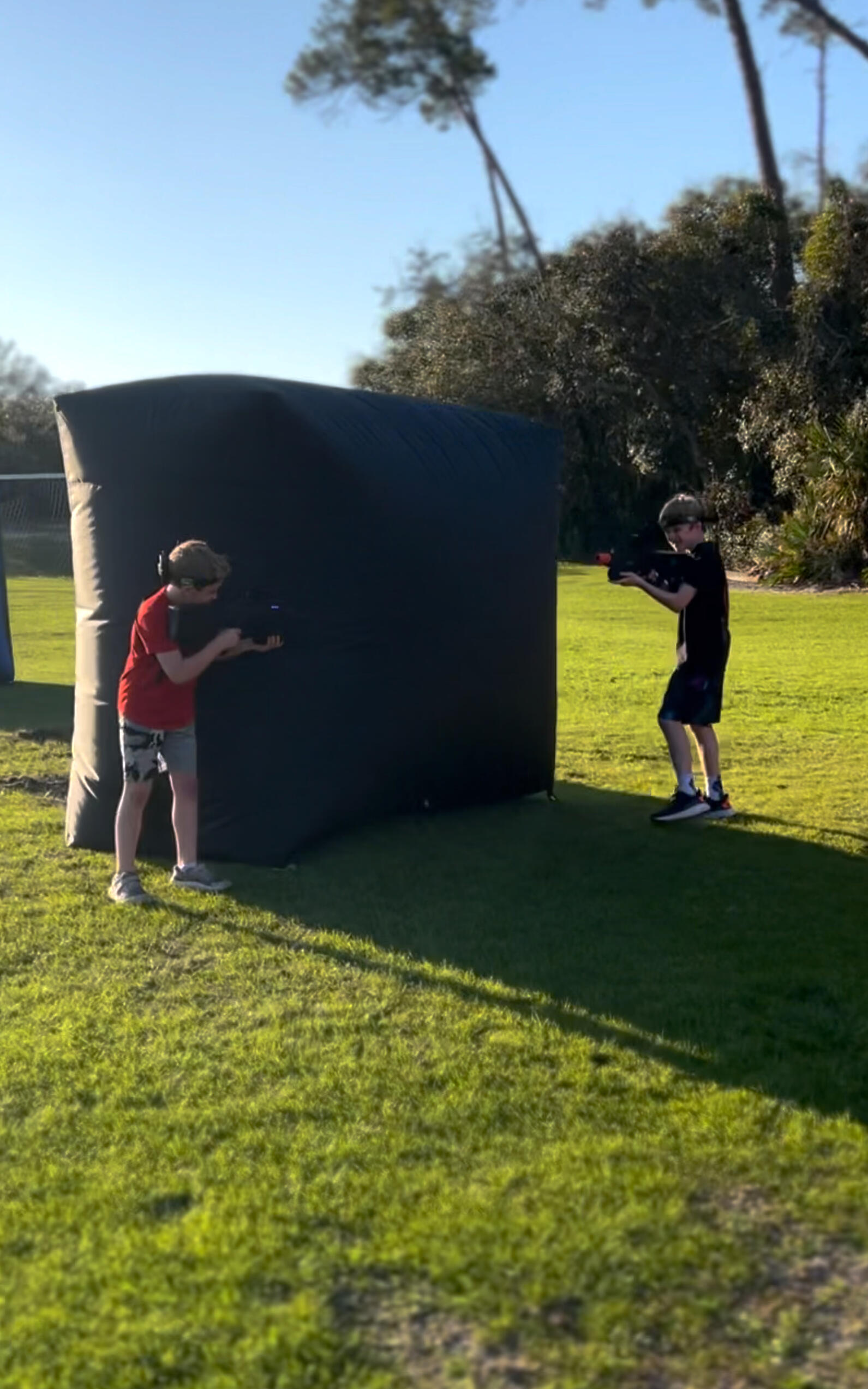 Custom Battlefield Setup - We transform your backyard, park, or chosen location into an action-packed laser tag arena, complete with obstacles and bases for maximum fun.
